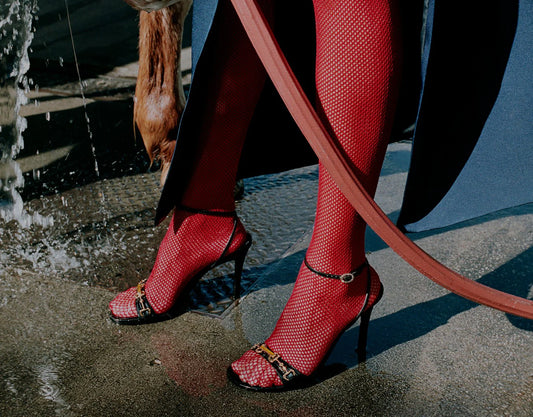 GUCCI- NIB 2023 Red Fishnet Stockings, Size Medium