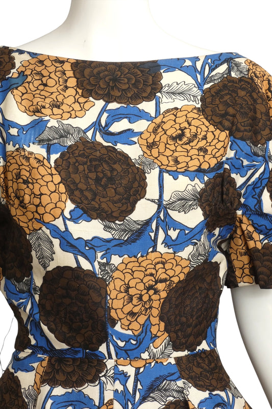 SCAASI- 1960s Floral Linen Dress, Size 6