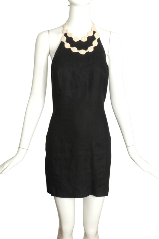 CHRISTIAN FRANCIS ROTH- 1992 Black Linen Halter Dress, Size 4