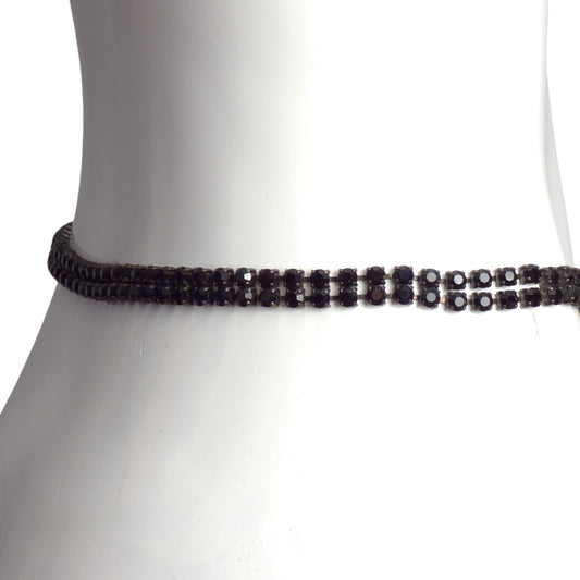 YVES SAINT LAURENT- 1980s Black Rhinestone and Rope Belt