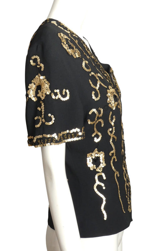 NORMA KAMALI- 1990s Black Sequin Crepe Jacket, Size 12