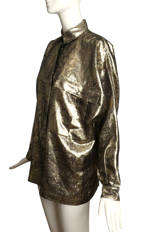 GENNY- 1980s Metallic Silk L/S Blouse, Size 12