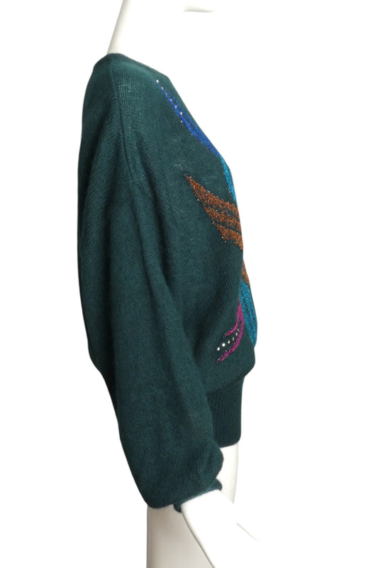 ESCADA- 1980s Rhinestone Knit Sweater, Size 10