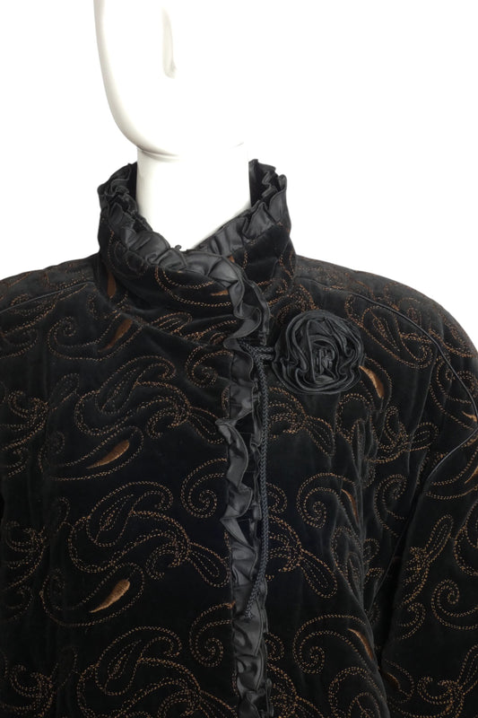 FENDI 365- 1980s Black Velvet Embroidered Coat, Size 6
