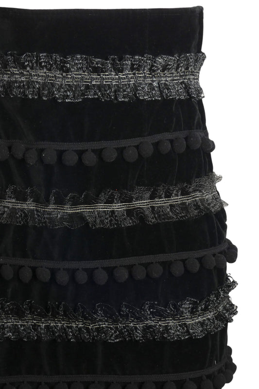 CHRISTIAN LACROIX- 1980s Black Velvet Pom Pom Skirt, Size 2