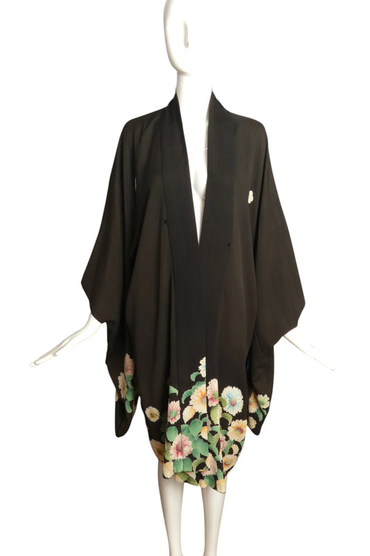 1920s Reversible Floral Silk Kimono, Size Large