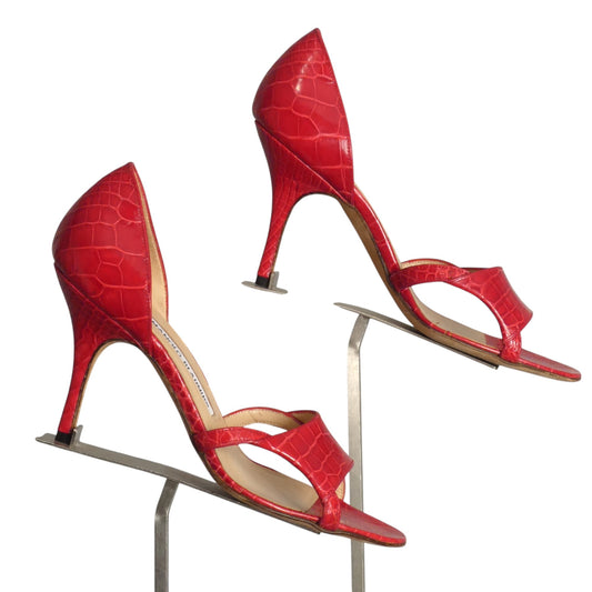 MANOLO BLAHNIK- Red Alligator Pumps, Size 36.5