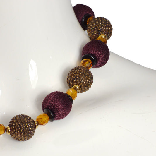 YVES SAINT LAURENT- c.1970 Wood & Metal Bead Necklace