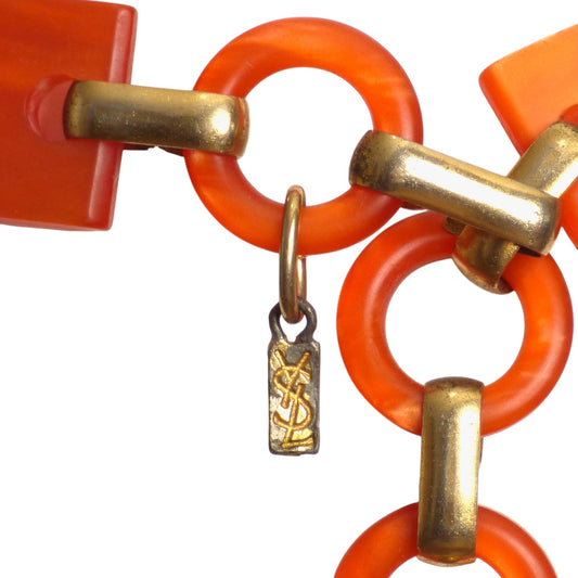 YVES SAINT LAURENT- c.1970 Marbled Orange Lucite Chain Belt