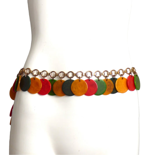 YVES SAINT LAURENT- 1970s Lucite Charm Chain Belt