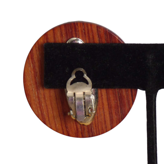 YVES SAINT LAURENT- c.1980 Round Wood & Rhinestone Earrings