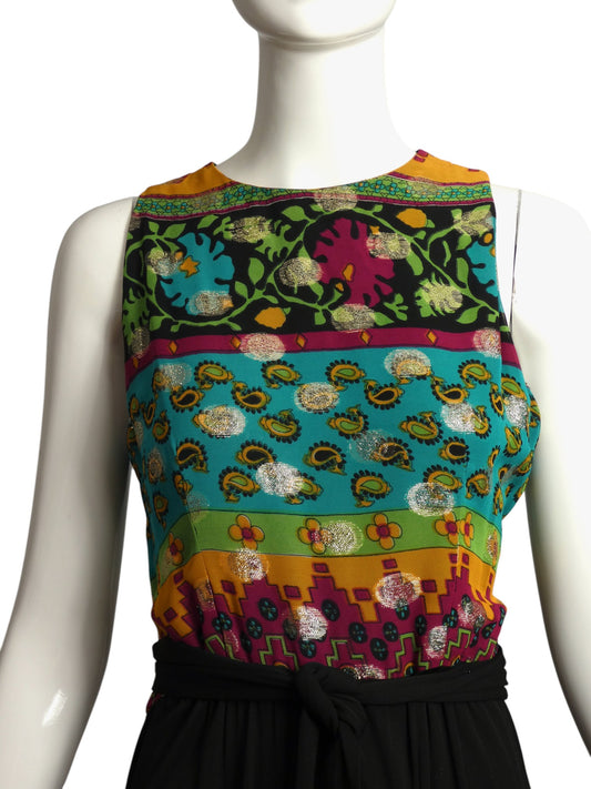 RODRIGUES- 1970s Printed Chiffon & Jersey Gown, Size 6