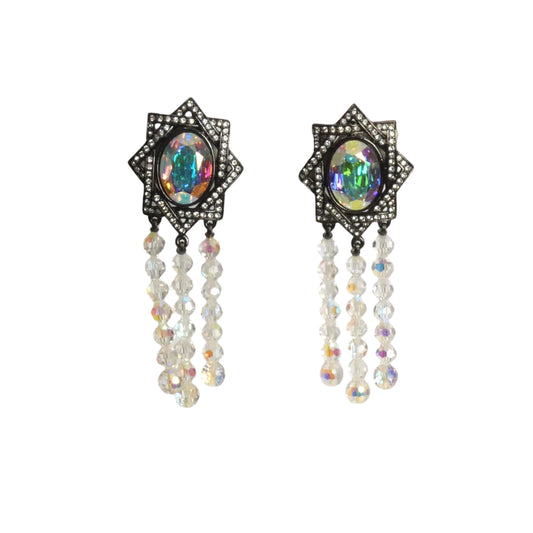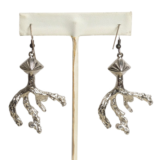 YVES SAINT LAURENT- Silver Rhinestone Coral Shaped Earrings