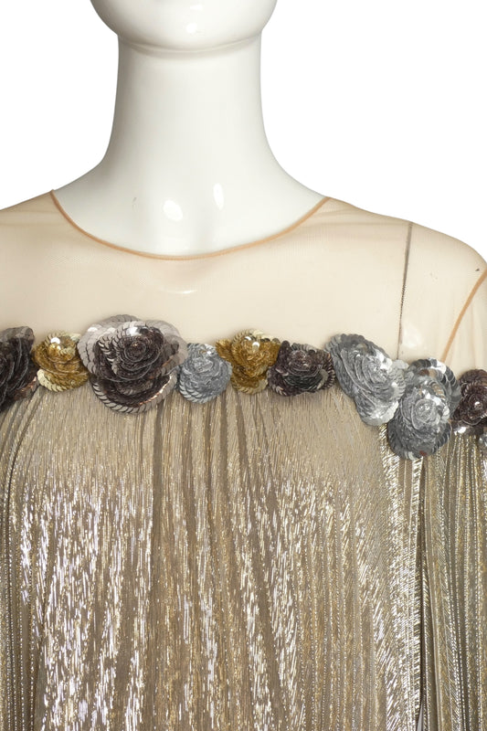 OSCAR DE LA RENTA- 2023 Embellished Metallic Plisse Gown, Size Large