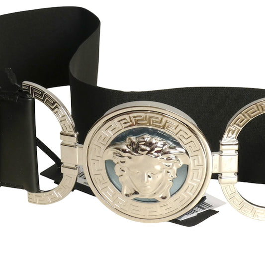 VERSACE- NWT 2024 Black Elastic & Metal Belt, Size XL