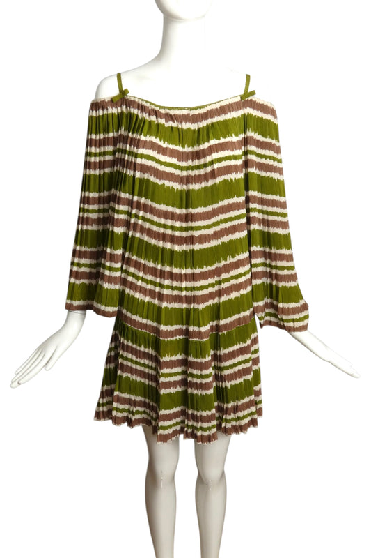 1985 Multi Color Pleated Stripe Silk Dress, Size 6