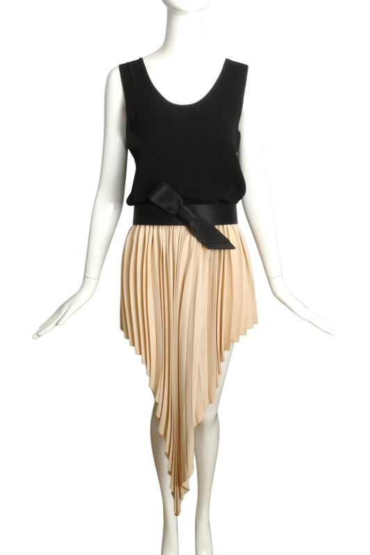 1989 Black & Ivory Pleated Crepe Gown, Size 4