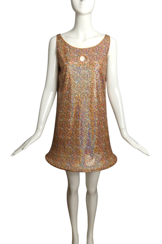 1980 Yellow Pleated Rayon Halter Dress, Size 6