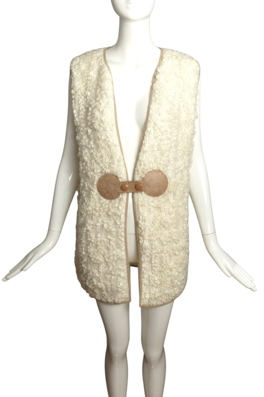 2007 Ivory Wool Boucle Knit Coat, Size 6