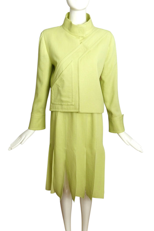 2000 Lime Wool Carwash Skirt Suit, Size 8