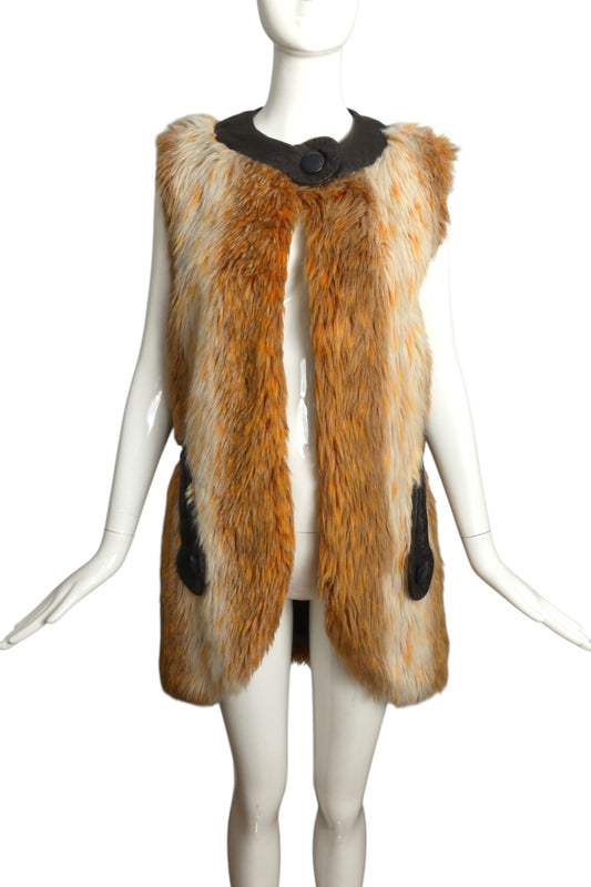 1990 Green Worsted Wool Fur Trimmed Coat, Size 12
