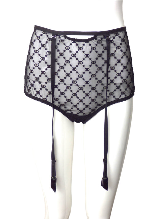 GUCCI- NWT 2022 Black Lace Garter Panties, Size Medium