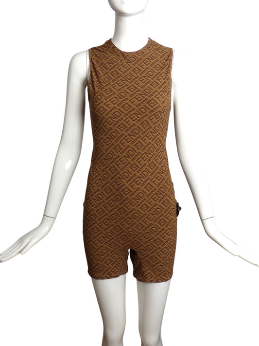 FENDI X SKIMS- 2021 Brown Logo Print Bodysuit, Size 6