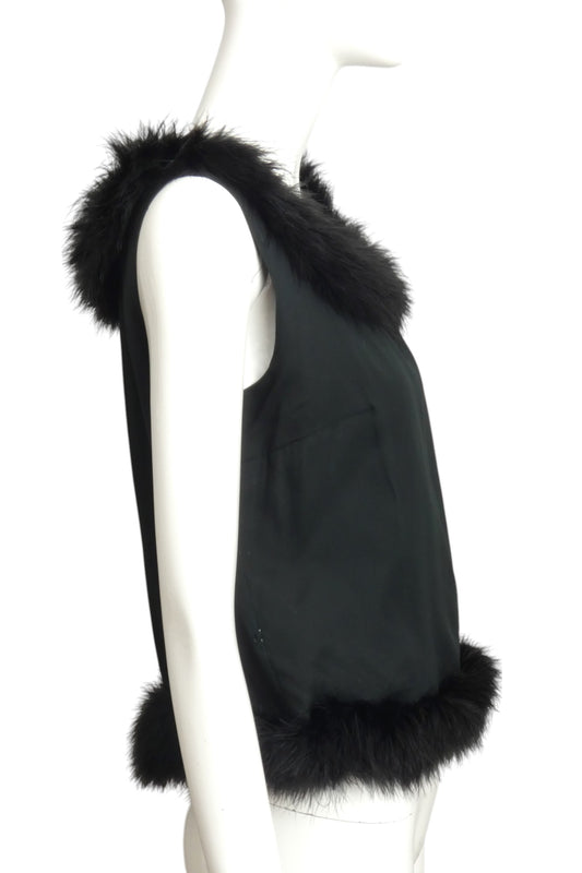 1950s Black Taffeta & Maribou Feather Shell, Size 6