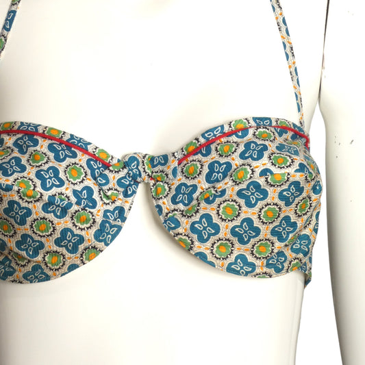 1950s 2pc Multi Color Cotton Swimsuit, Size 4