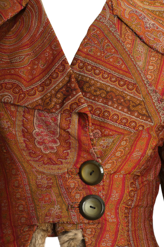 Victorian Paisley & Fur Bolero Jacket, Size 4