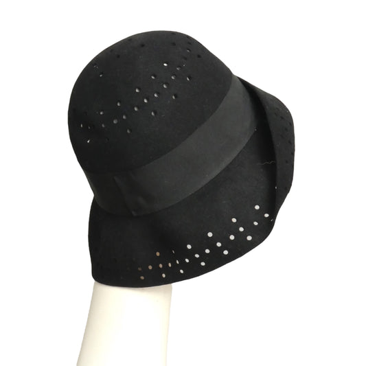 YVES SAINT LAURENT- 1970s Black Cutwork Wool Felt Hat