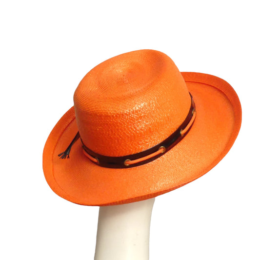 YVES SAINT LAURENT- 1970s Orange Straw Fedora