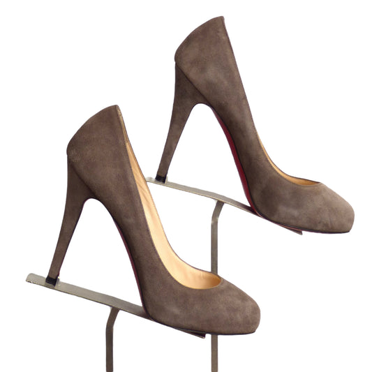 CHRISTIAN LOUBOUTIN- Gray Suede Pumps, Size 36