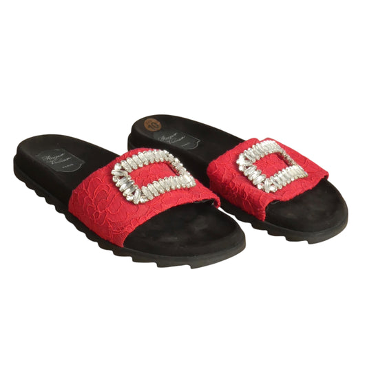2010s Lace Pilgrim Buckle Slides, Size-40