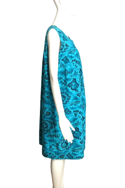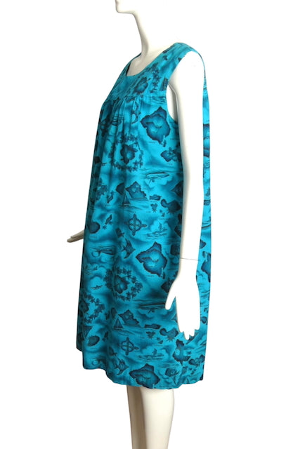 1960s Cotton Hawaiian Islands Print Dress, Size 8