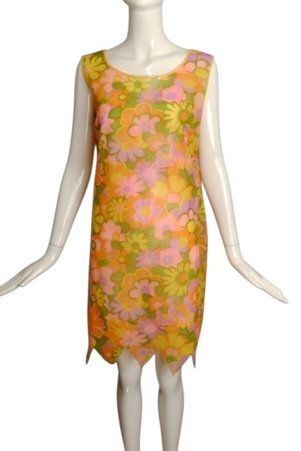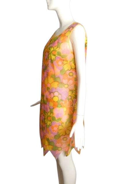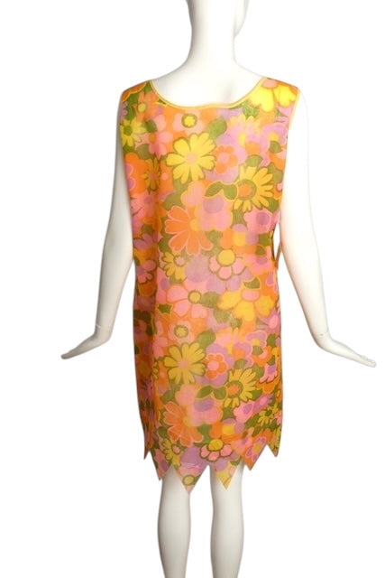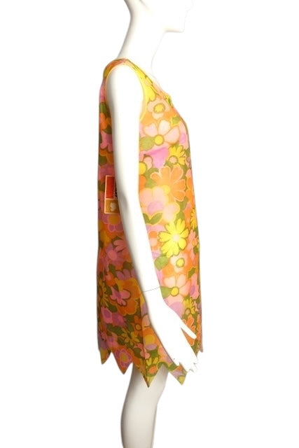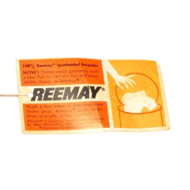 Description: Step back into the swinging ’60s with this playful floral paper dress! Bright blooms burst across the print, while cheerful yellow trim keeps the edges neat and fun. Designed with flattering diagonal bust darts, this lightweight shift dress brings effortless style and vintage charm. Plus, it still has its original garment tag—a true collector’s treat. Perfect for adding a splash of retro flair to your wardrobe!
