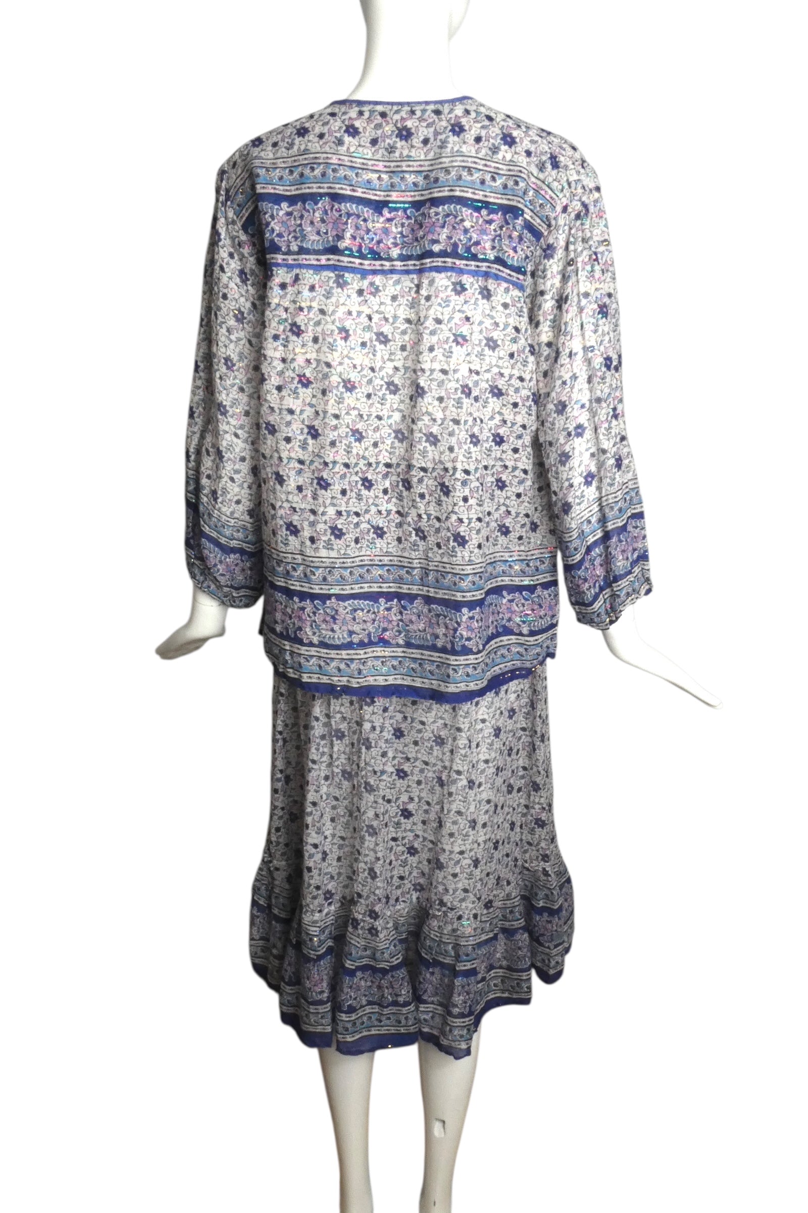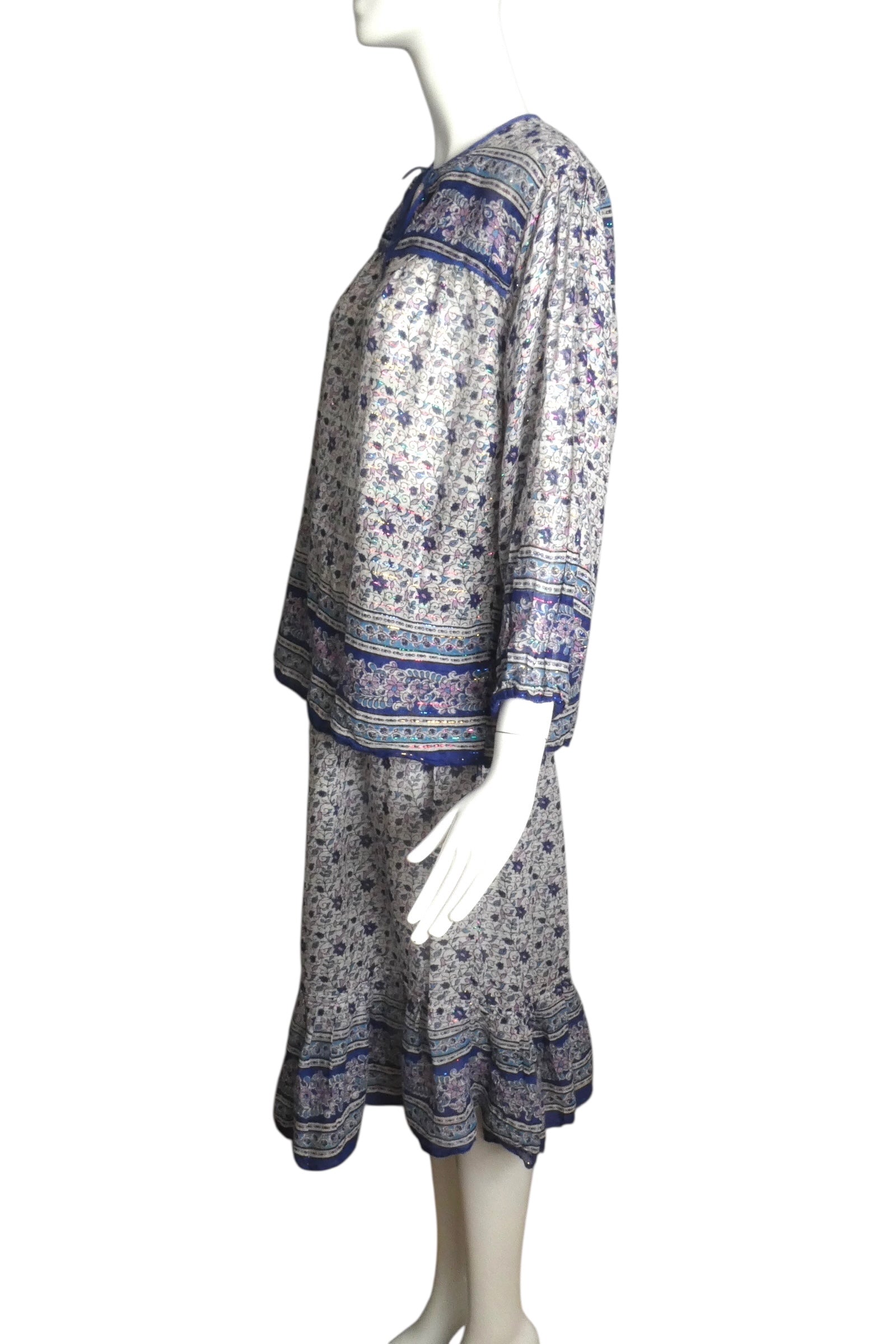 1970s Printed Batiste Skirt Ensemble, Size 8
