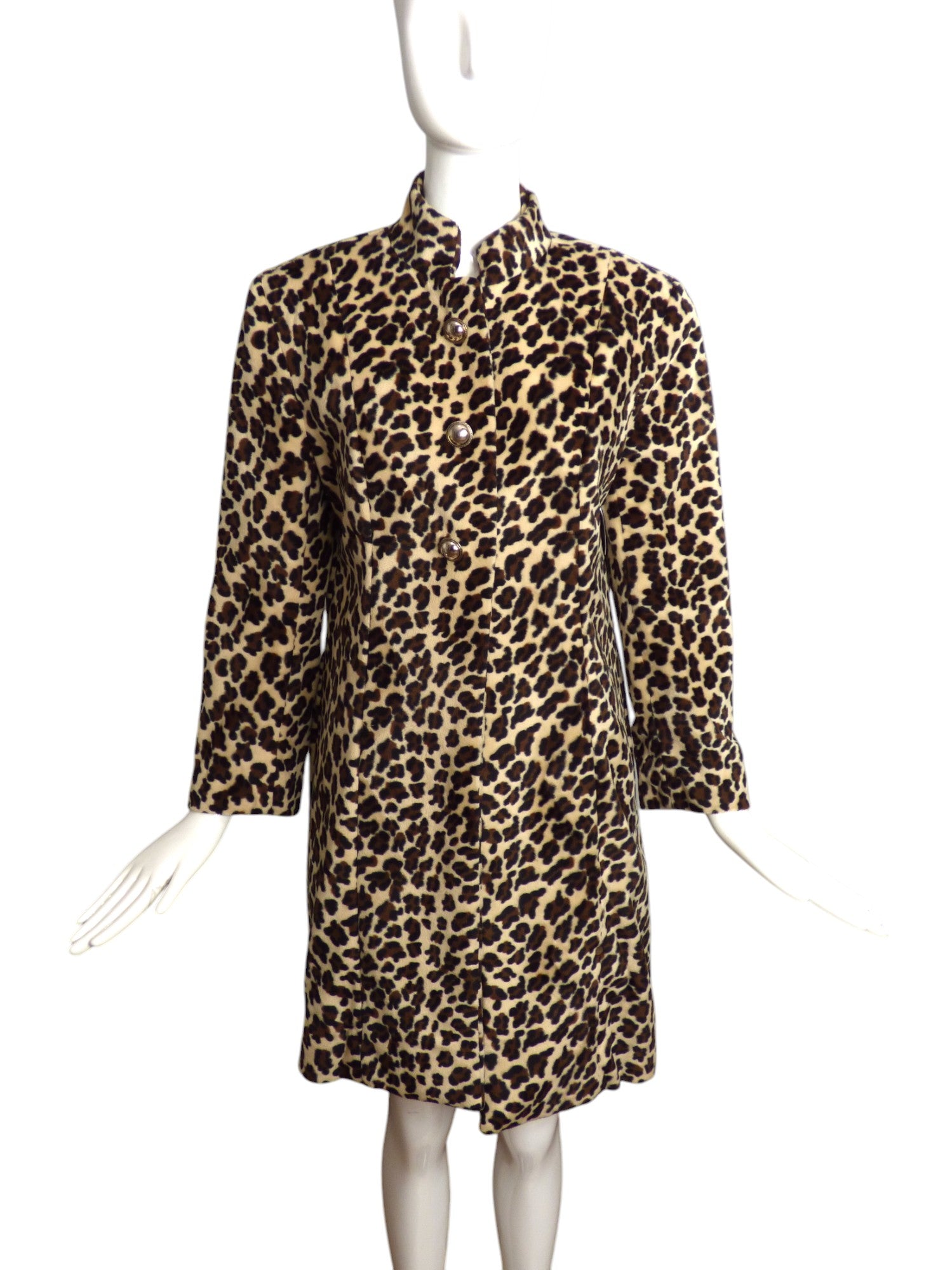 Description: Experience the joy of our fabulously fun printed spotted faux fur coat. With a standing collar and a stylish single hook closure at the neck, this coat is both fashionable and functional. And with Decotavie buttons down the front, our coat is sure to make a statement. The princess seaming and inset pockets at the sides add the perfect finishing touches to this must-have coat.
