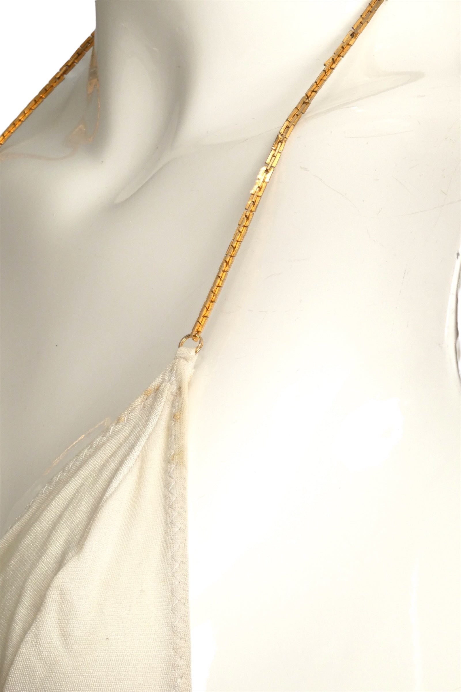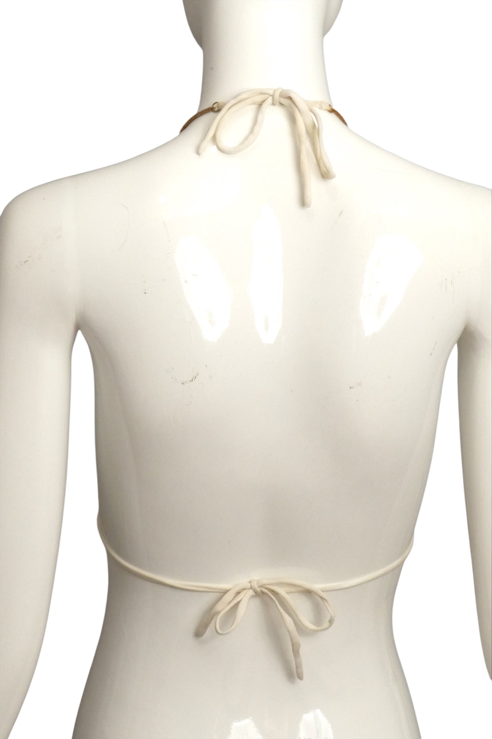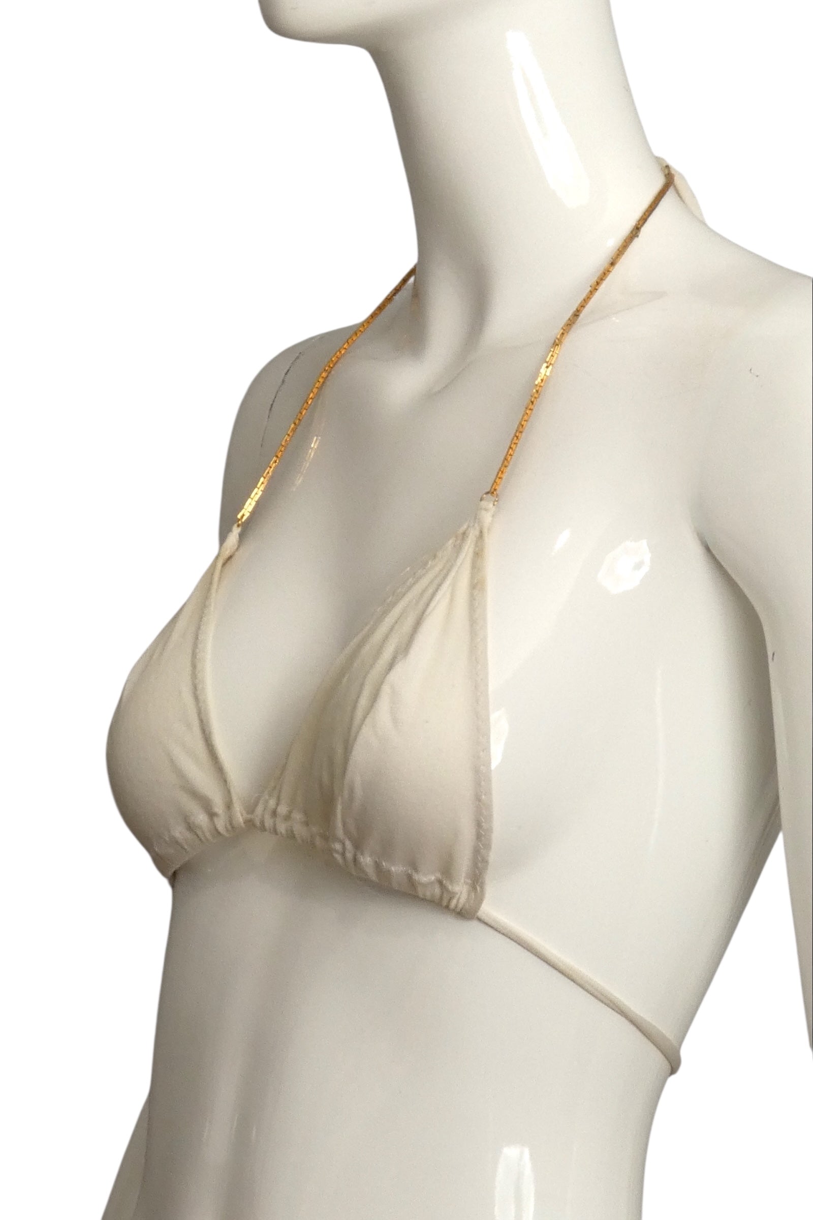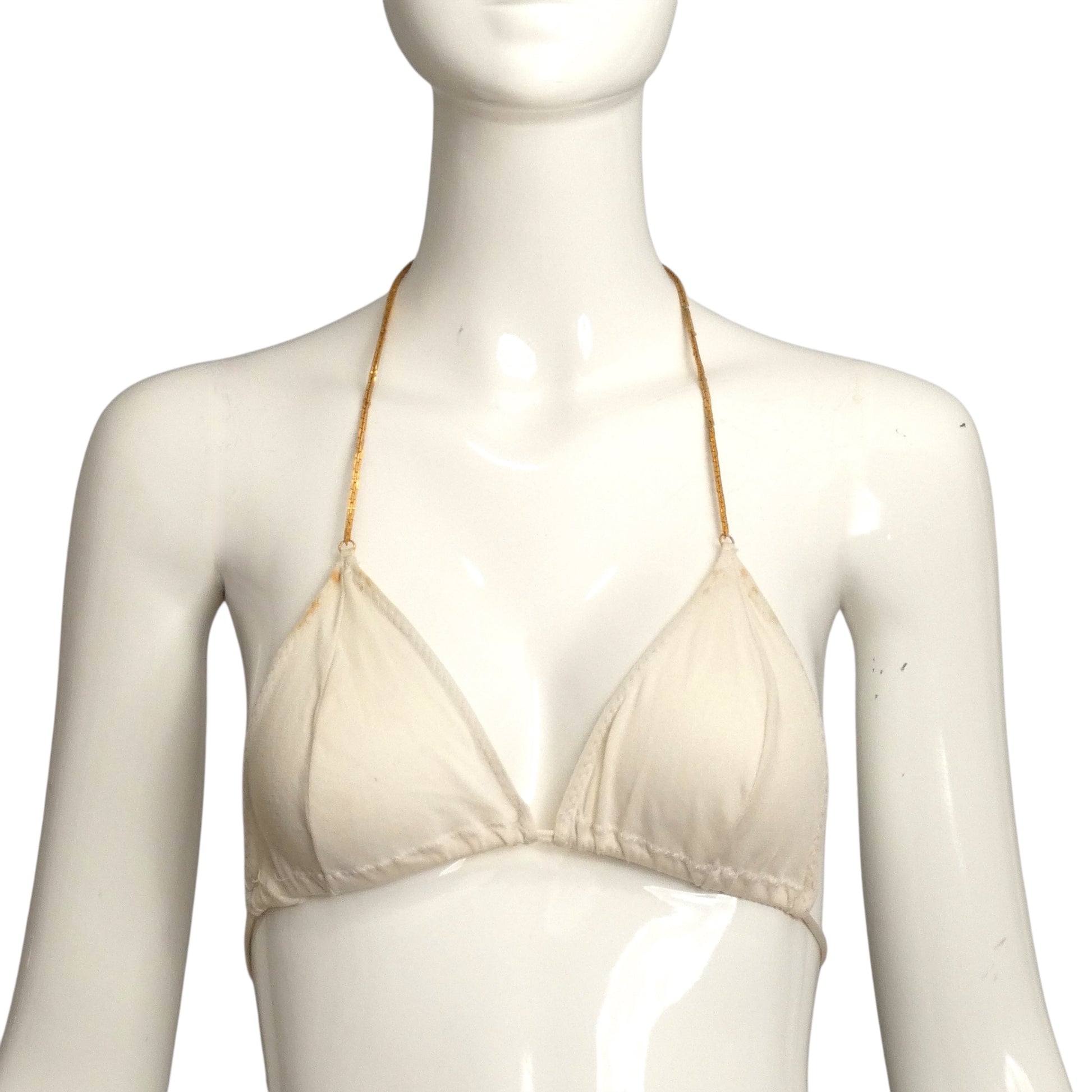 1970s White Knit & Gold Chain Bikini Top, Size 4