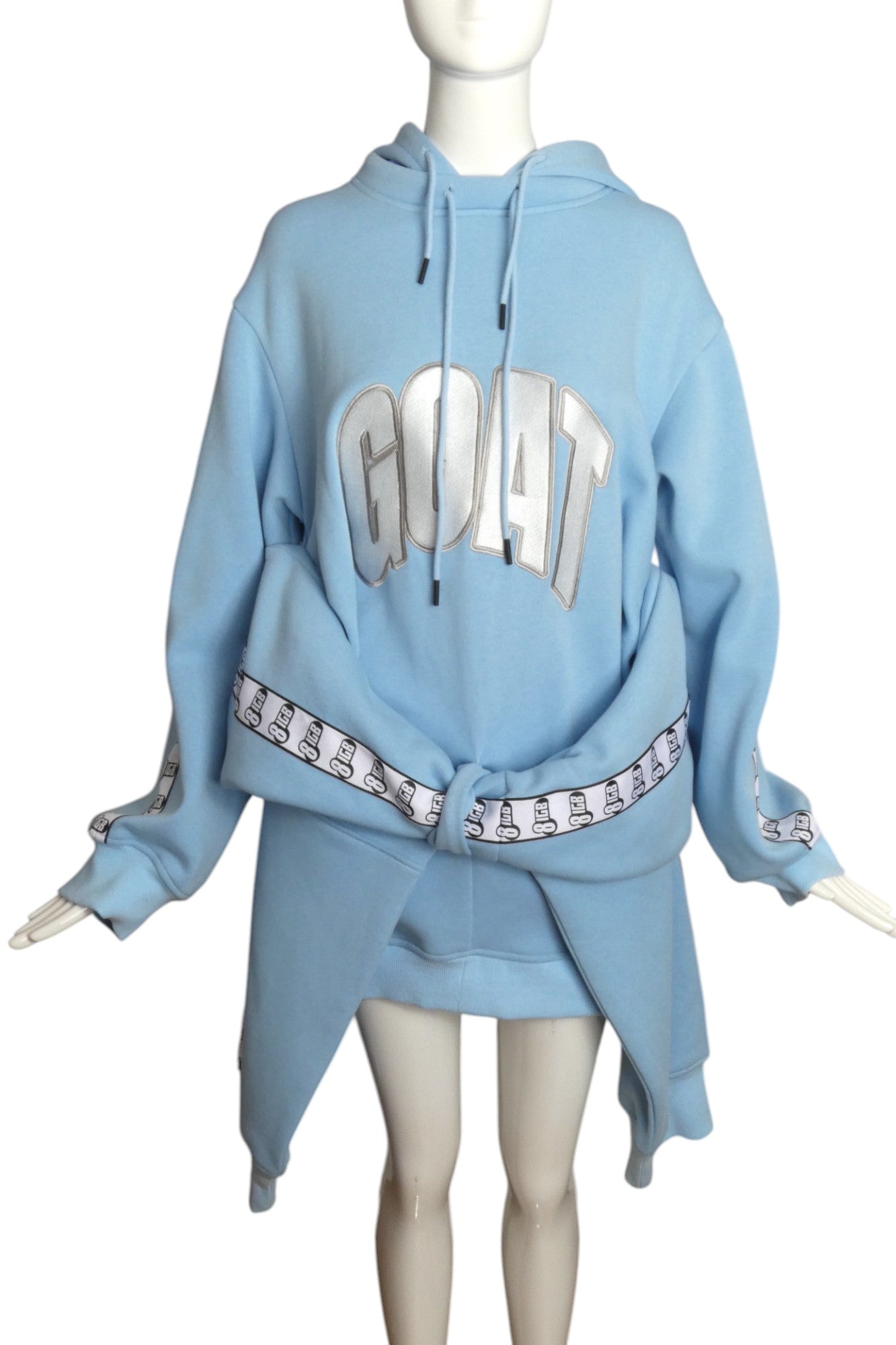 Description: Elevate your streetwear collection with this exceptional 8IGB COMMUNITY GOAT Hoodie. This innovative design features dual drawstring functionality—one at the hood and another at the neckline. The bold "Goat" chest graphic and "8IGB" sleeve branding make a definitive statement. Its distinctive layered construction includes a faux sweatshirt attached at the waist, creating a sophisticated multi-garment aesthetic while maintaining the convenience of a single piece.