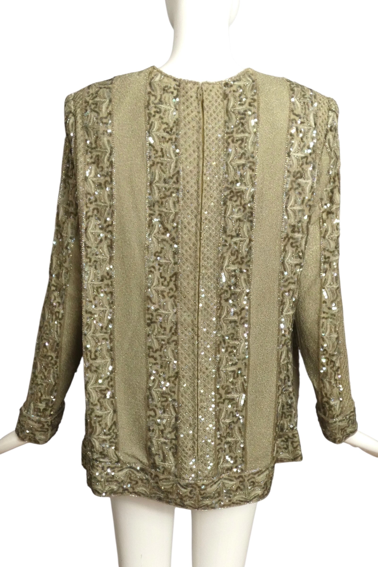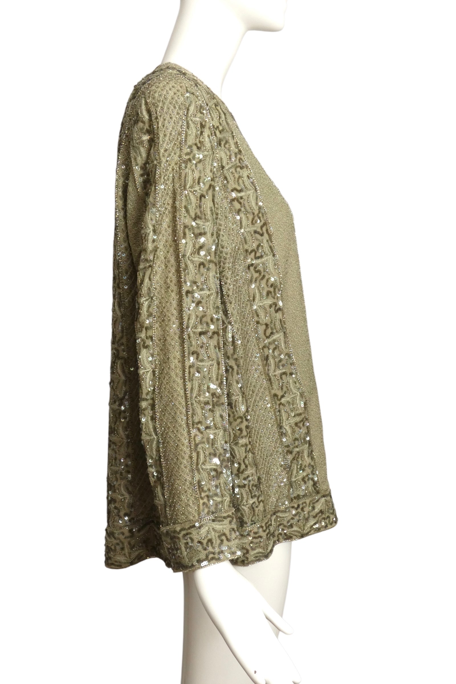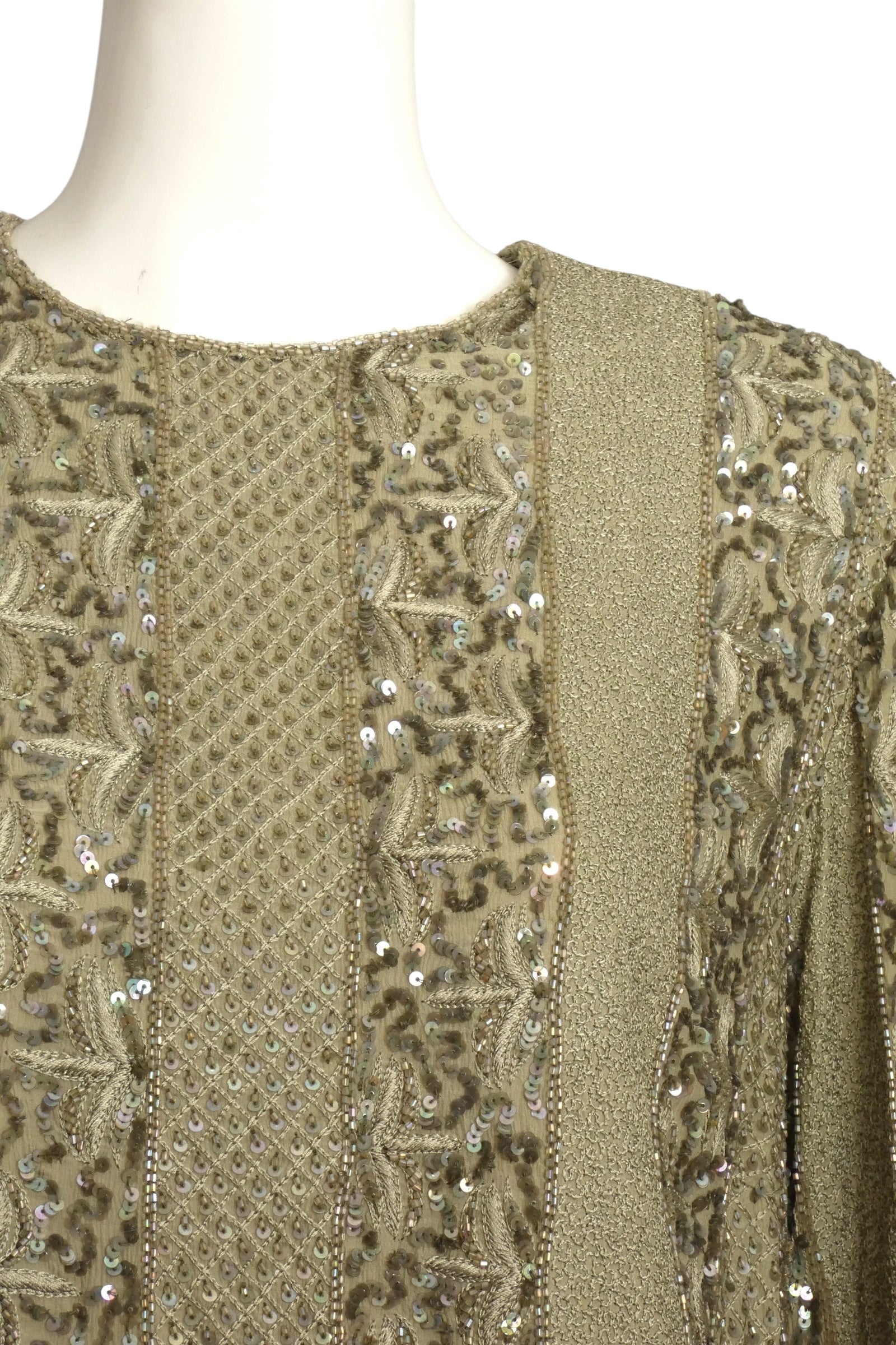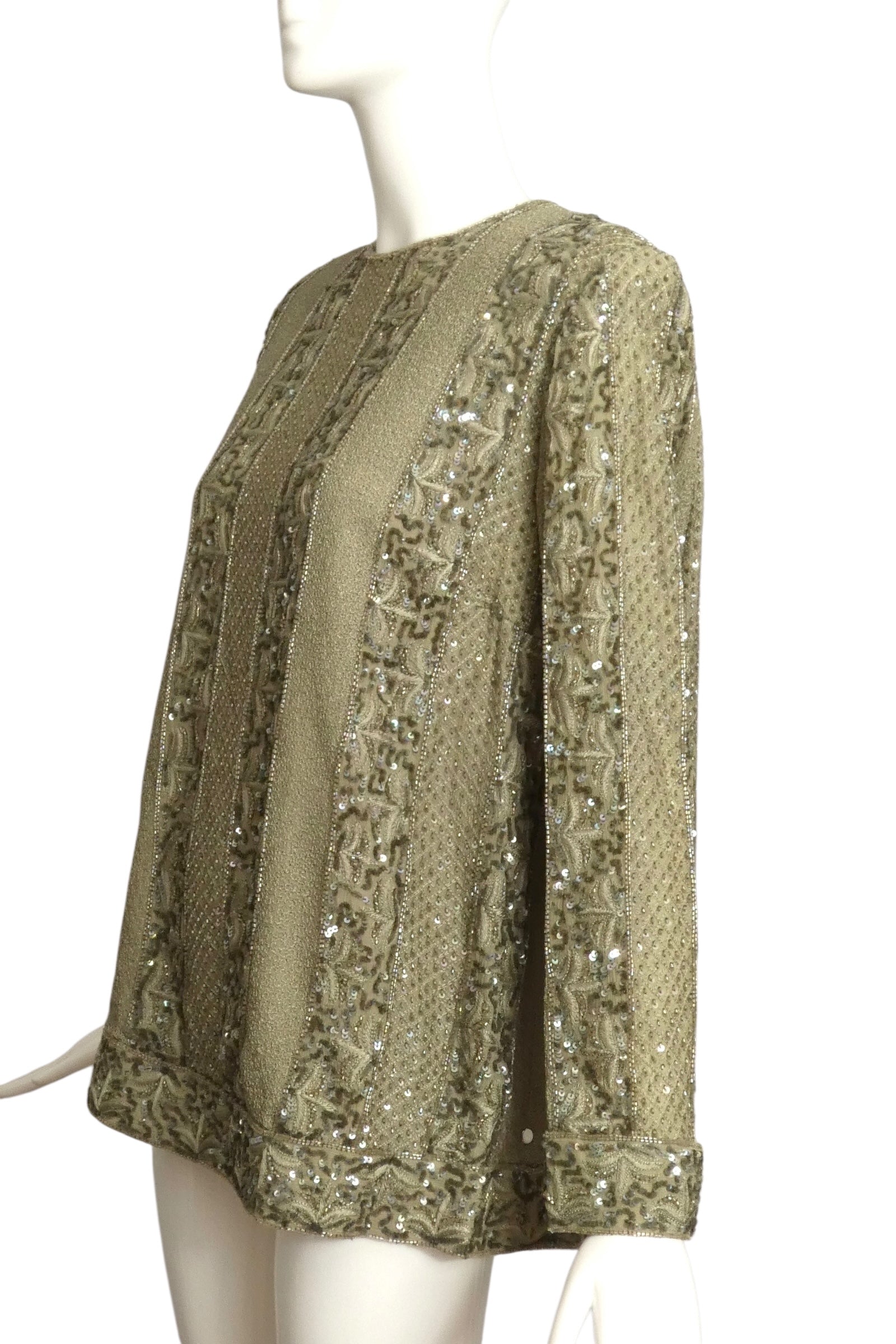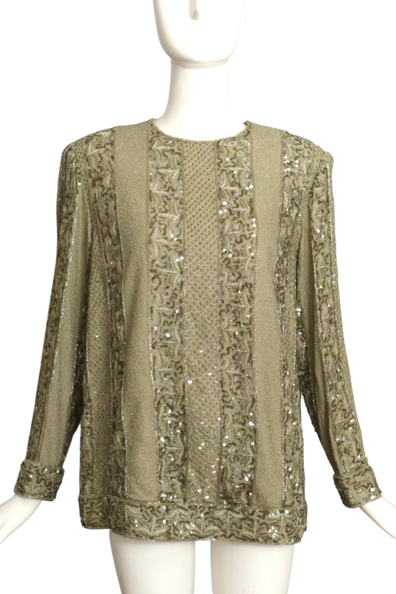 ANDRE LAUG- 1980s Green Bead & Sequin Tunic, Size 18