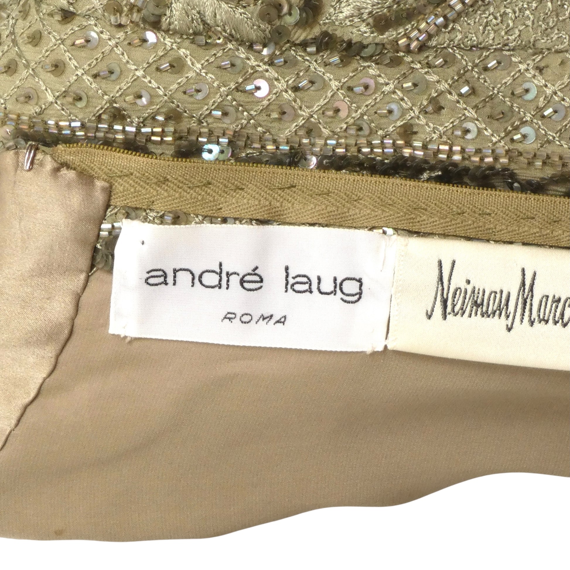 Description: Step into retro chic with this 1980s Andre Laug silk chiffon tunic! Sparkling with beads, sequins, and intricate embroidery, it’s a dazzling nod to vintage glamour. The playful green stripes and wide waistband highlight your shape, while the back zip makes slipping it on a breeze. Perfect for adding a fun, elegant twist to your wardrobe!
