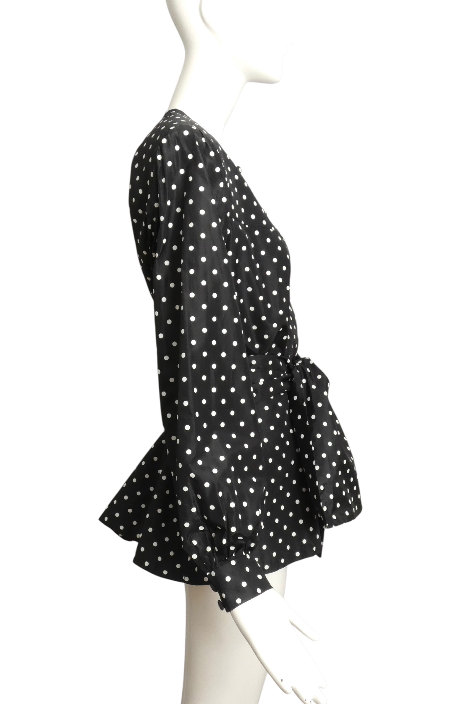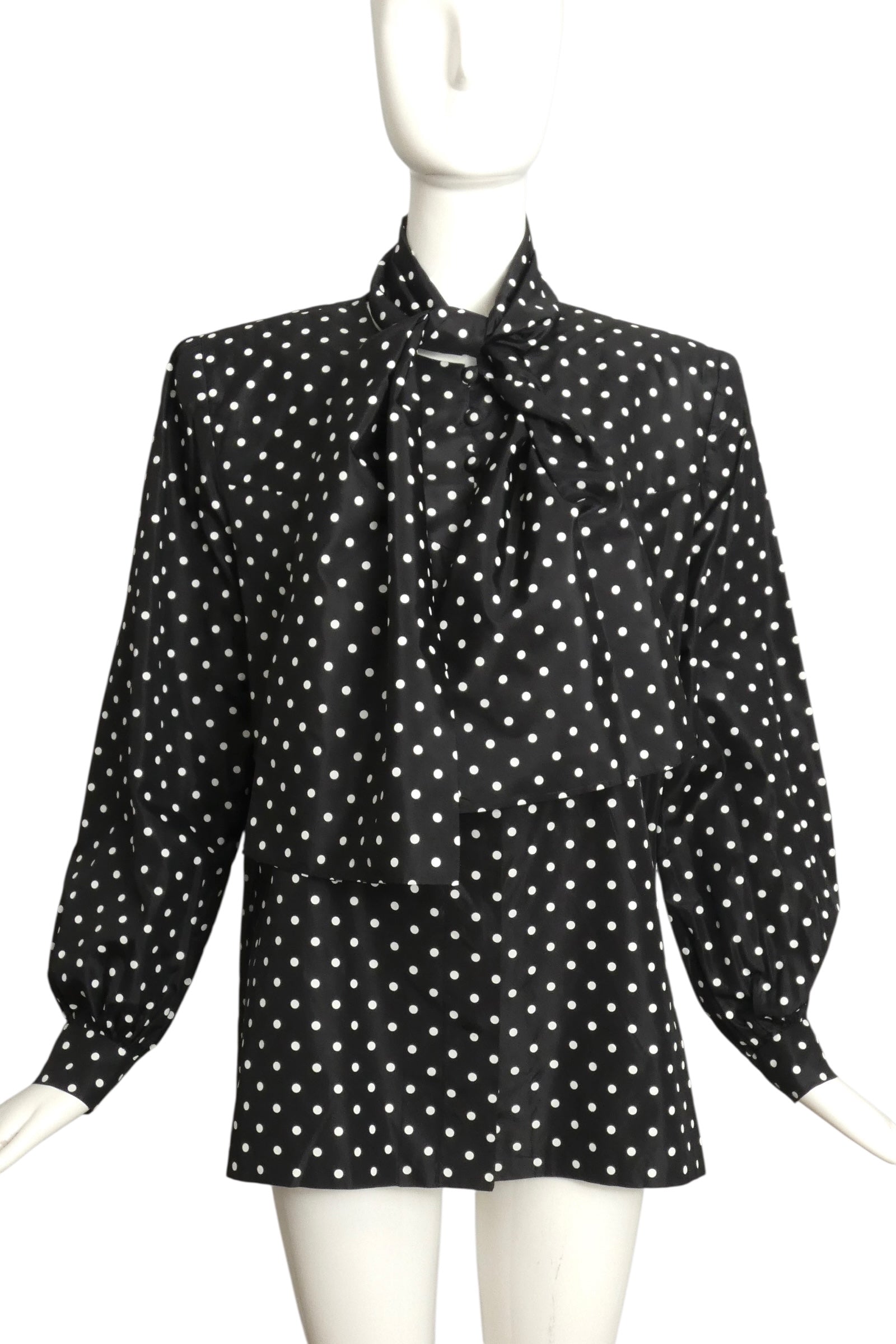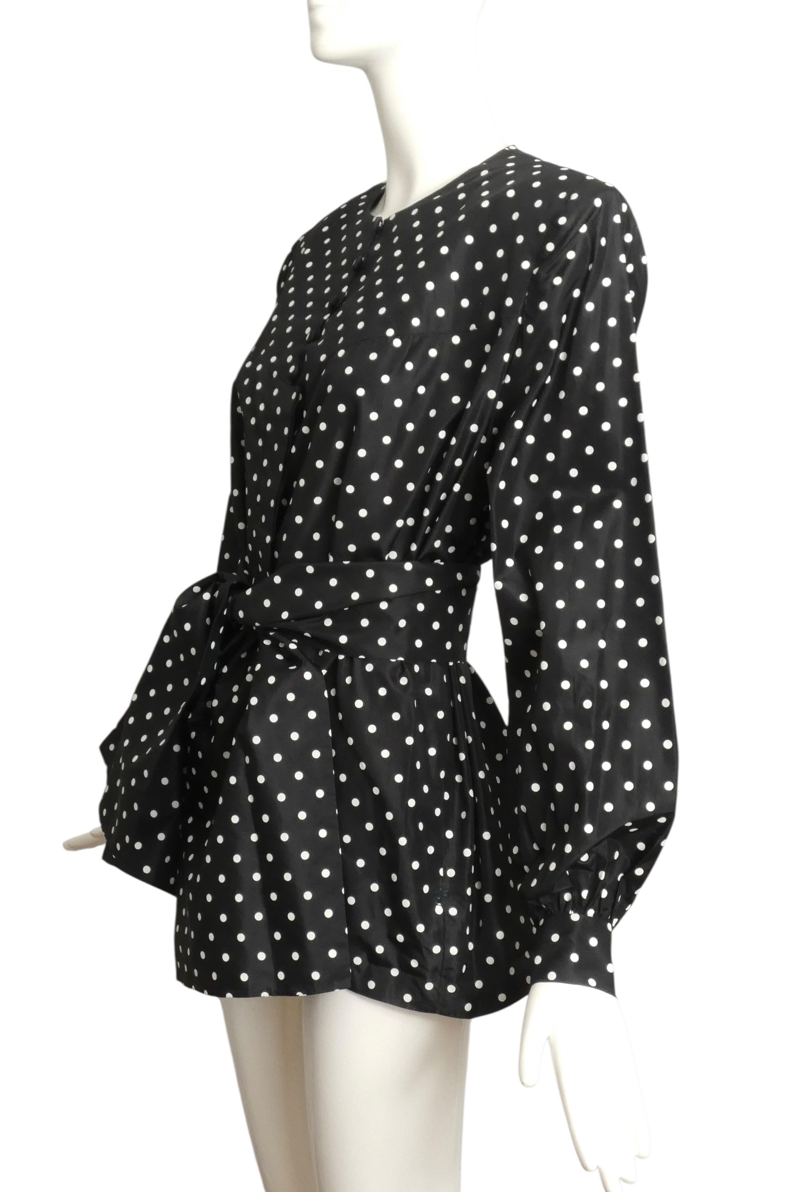ANDRE LAUG- 1980s Polka Dot Taffeta Blouse, Size 16