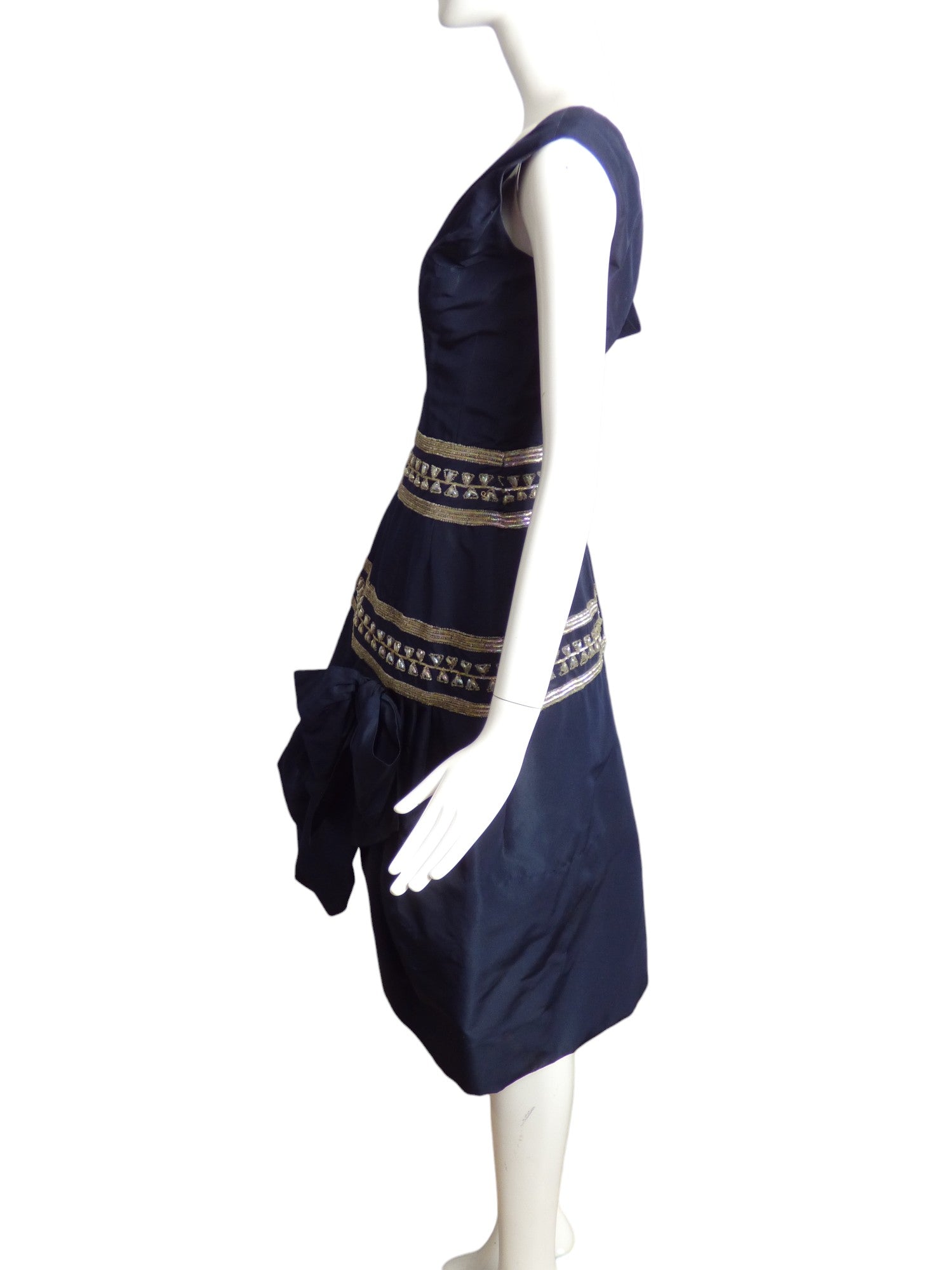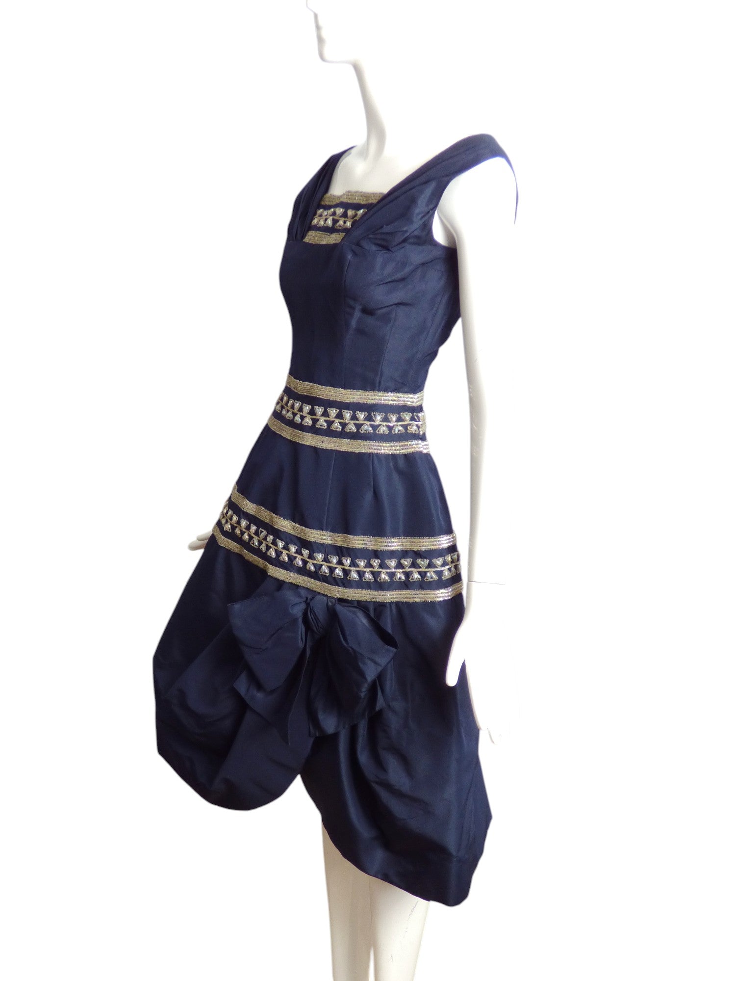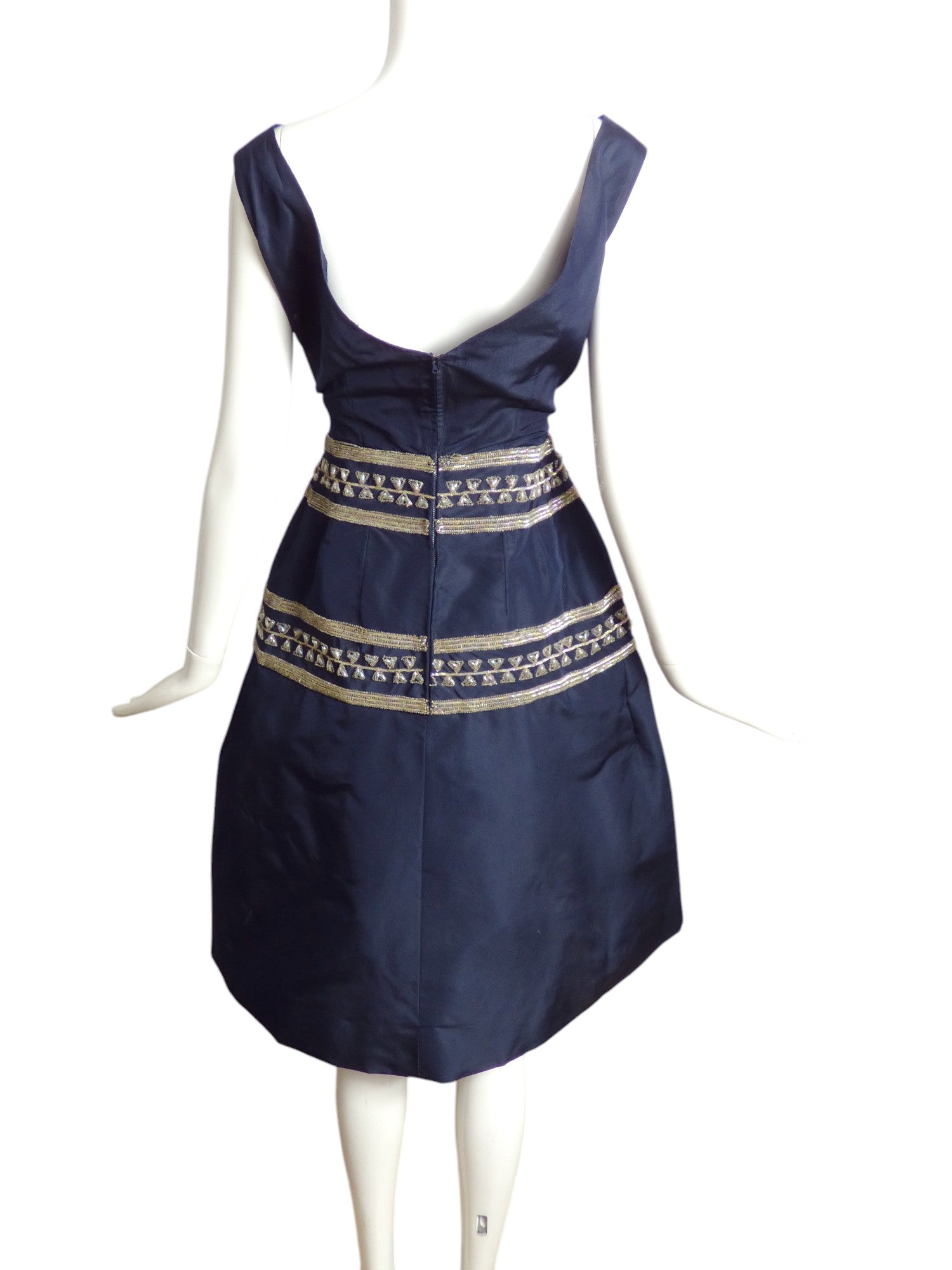 ANTONELLI- 1950s Navy Beaded Taffeta Party Dress, Size 6