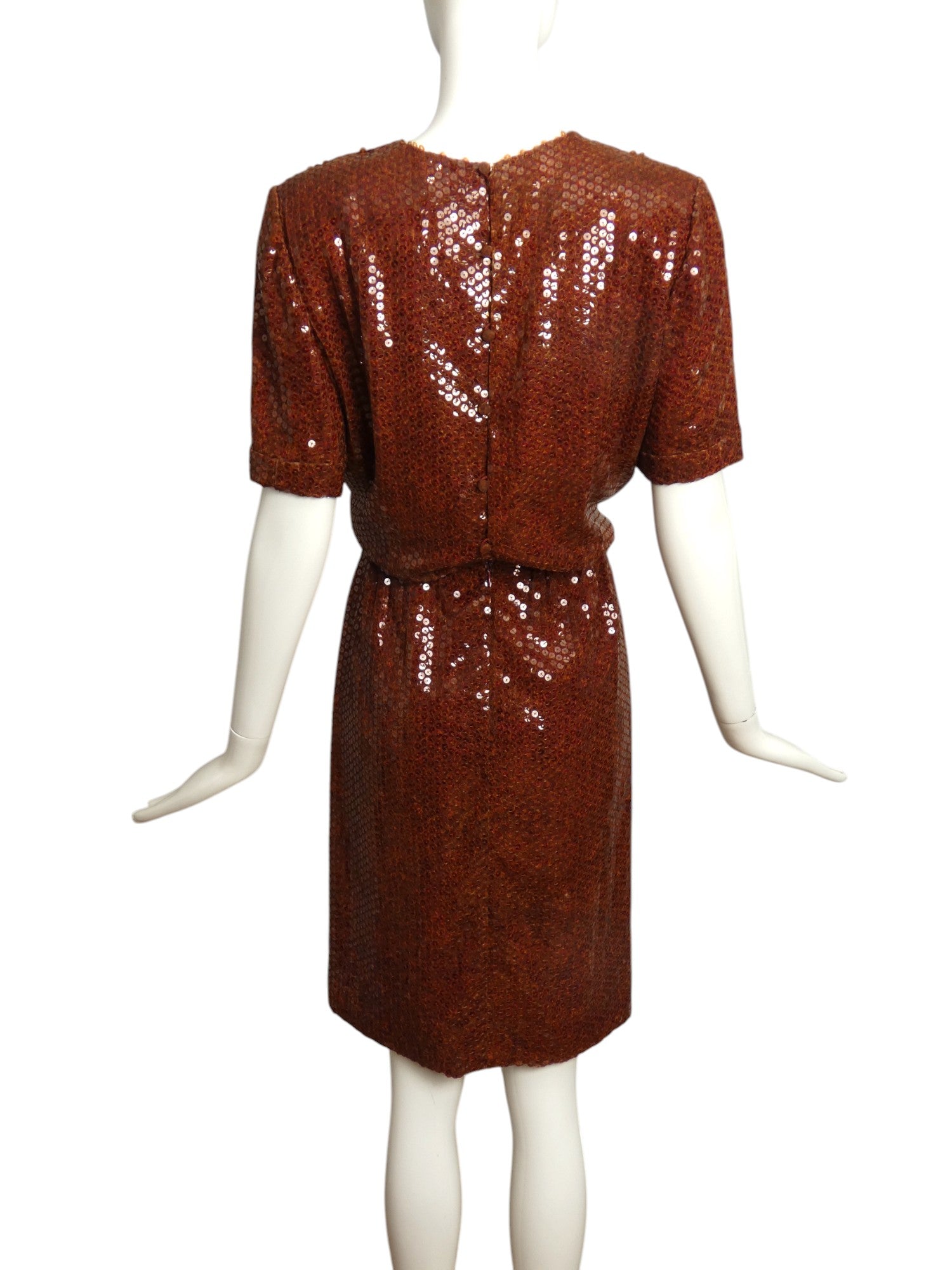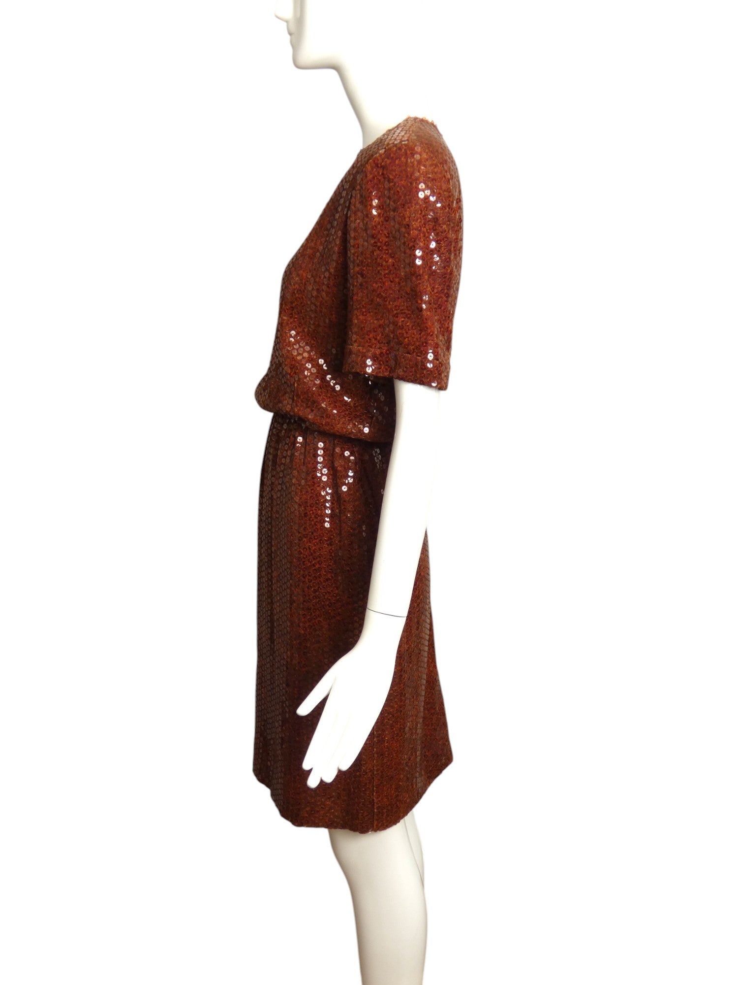 BILL BLASS- 1980s Brown Sequin Dress, Size 10