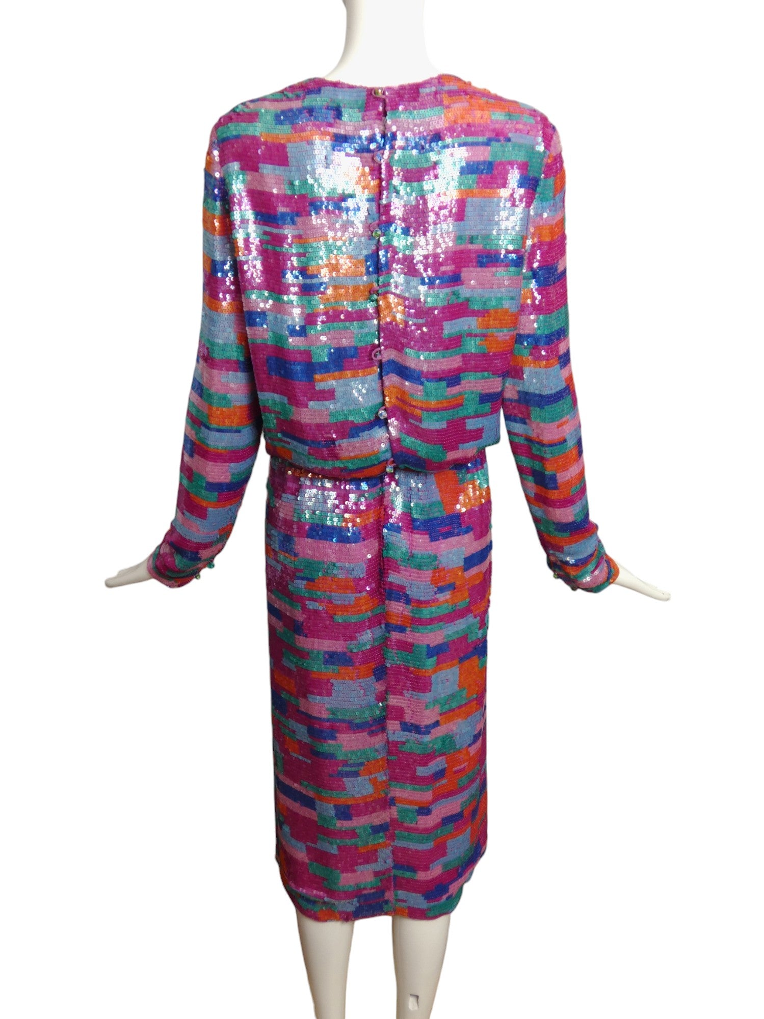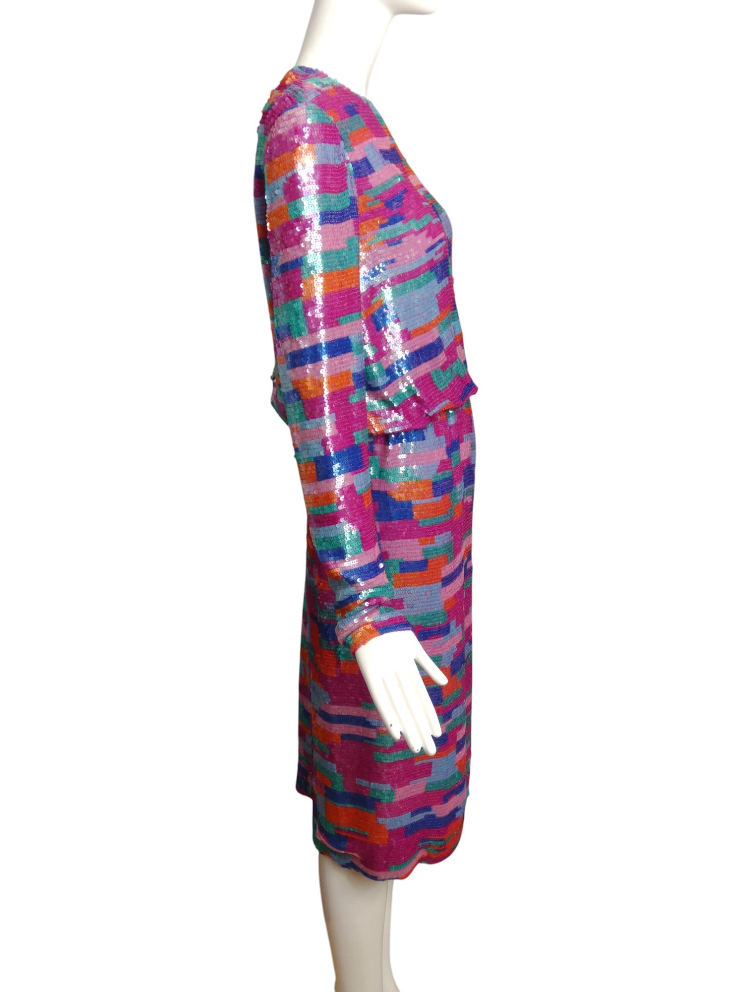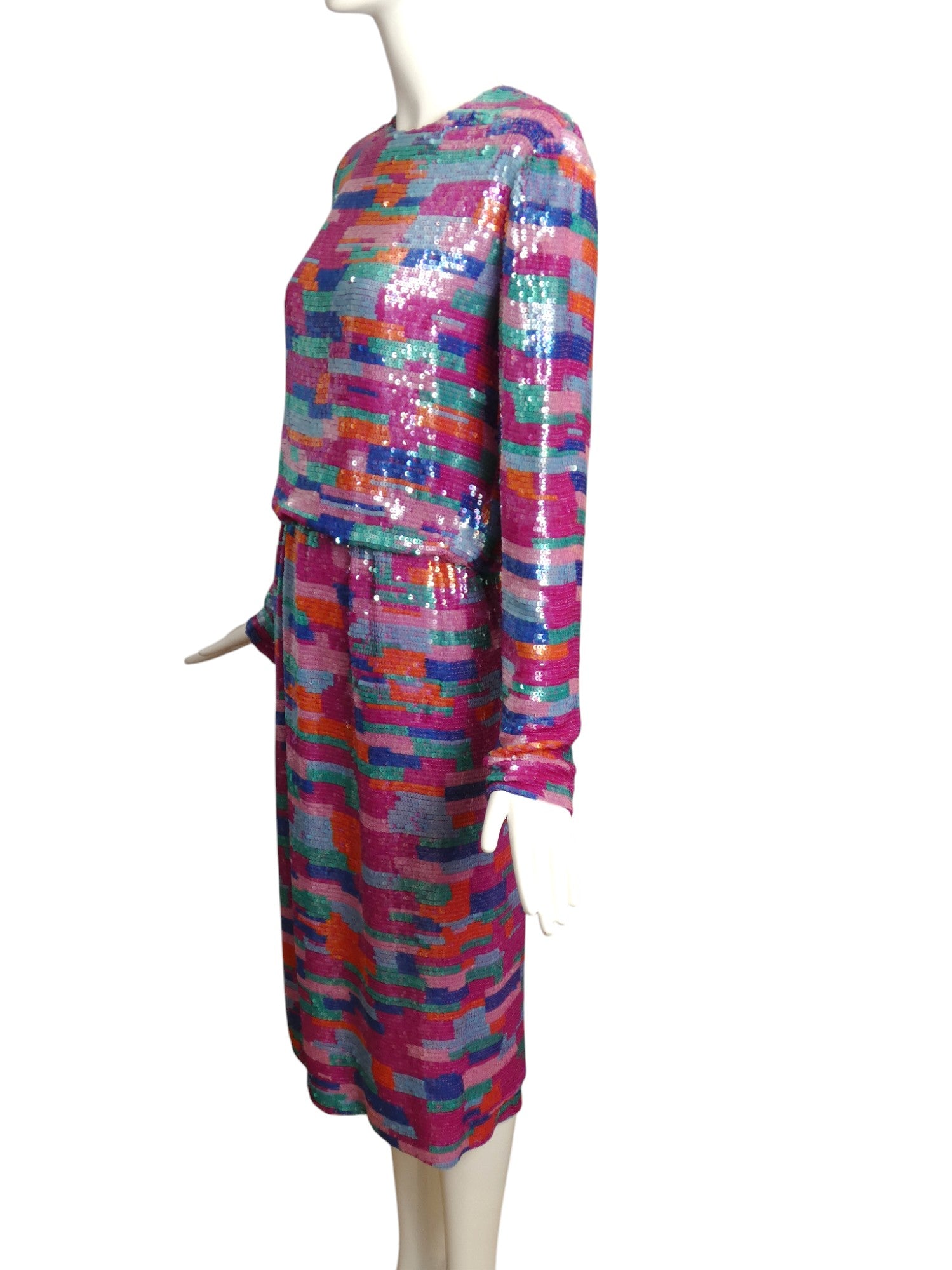BILL BLASS- 1983 Multi Color Sequin Dress, Size 6