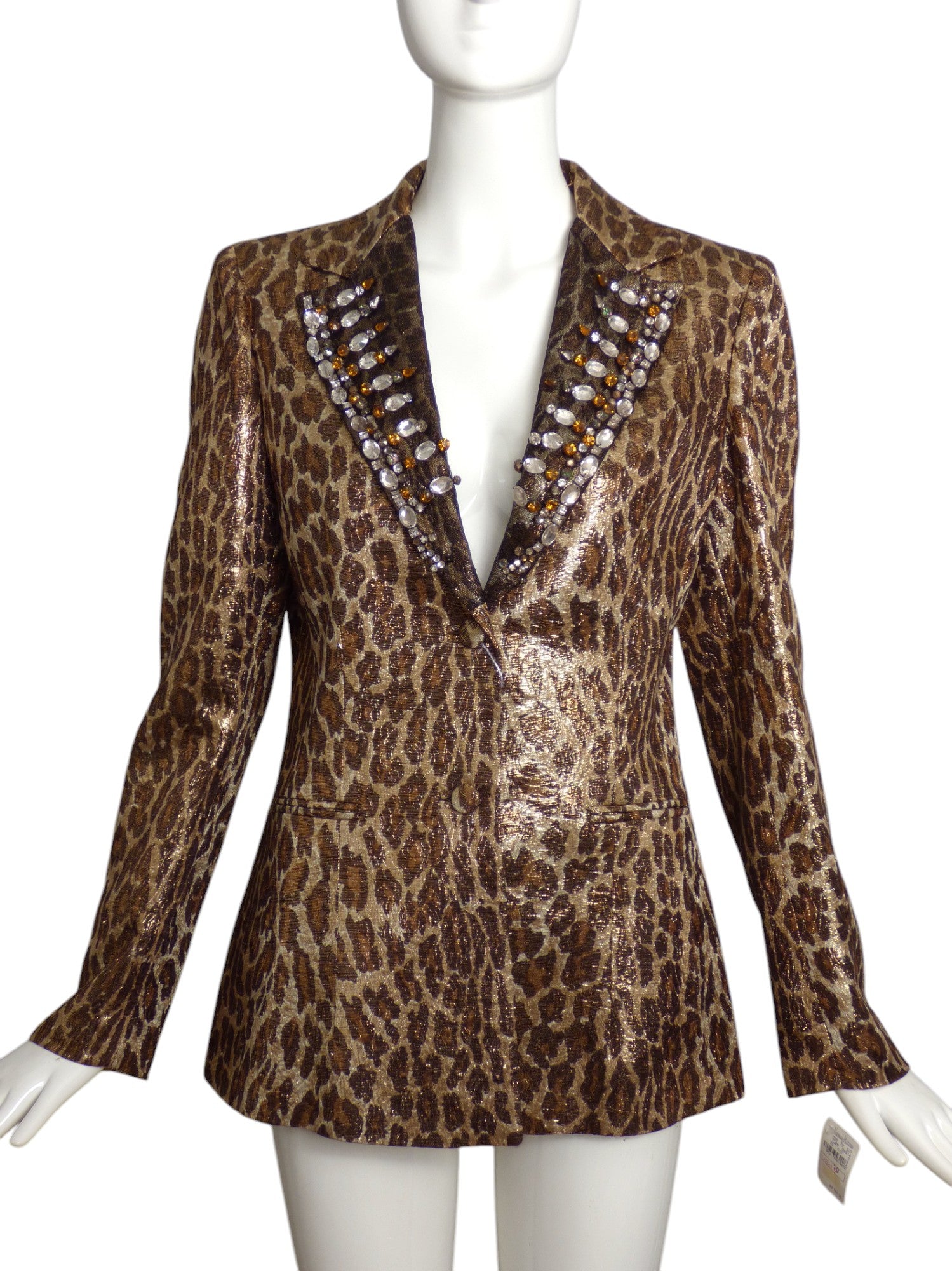 BLUMARINE- NWT Jeweled Metallic Animal Print Blazer, Size 10