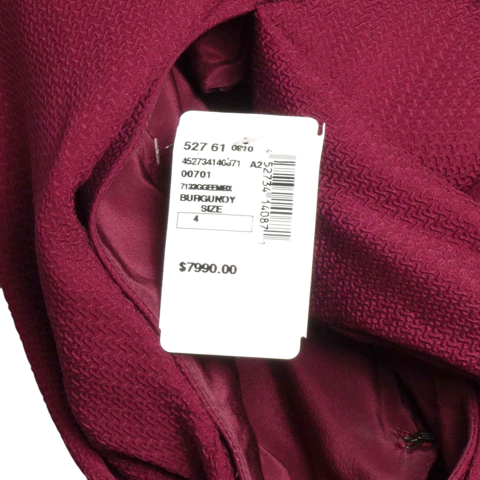 Description: A sophisticated 2010 Carolina Herrera evening gown in deep burgundy crepe that showcases the designer's refined approach to contemporary elegance. The gown features an architecturally interesting upper bodice with a graceful draped band sweeping from the left shoulder to the right arm, creating dynamic visual movement. The body is precisely dart-fitted and entirely embellished with sparkling metal seed beads that catch light with every gesture. This custom commission reveals evidence of a thoughtful color reinterpretation from the original design, adding a layer of individuality to this haute couture piece. A testament to Herrera's mastery of draping and embellishment.