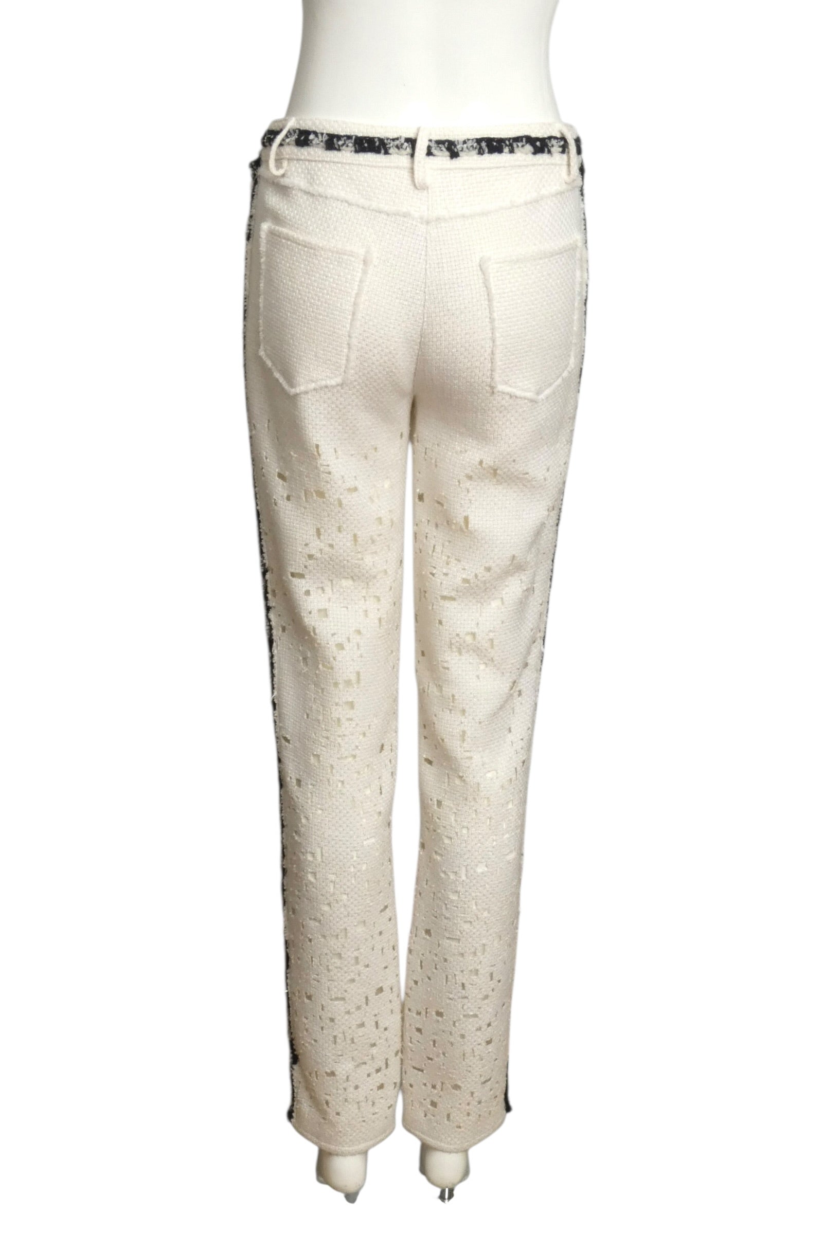 CHANEL- NWT 2011 White & Black Lasercut Tweed Trousers, Size 8