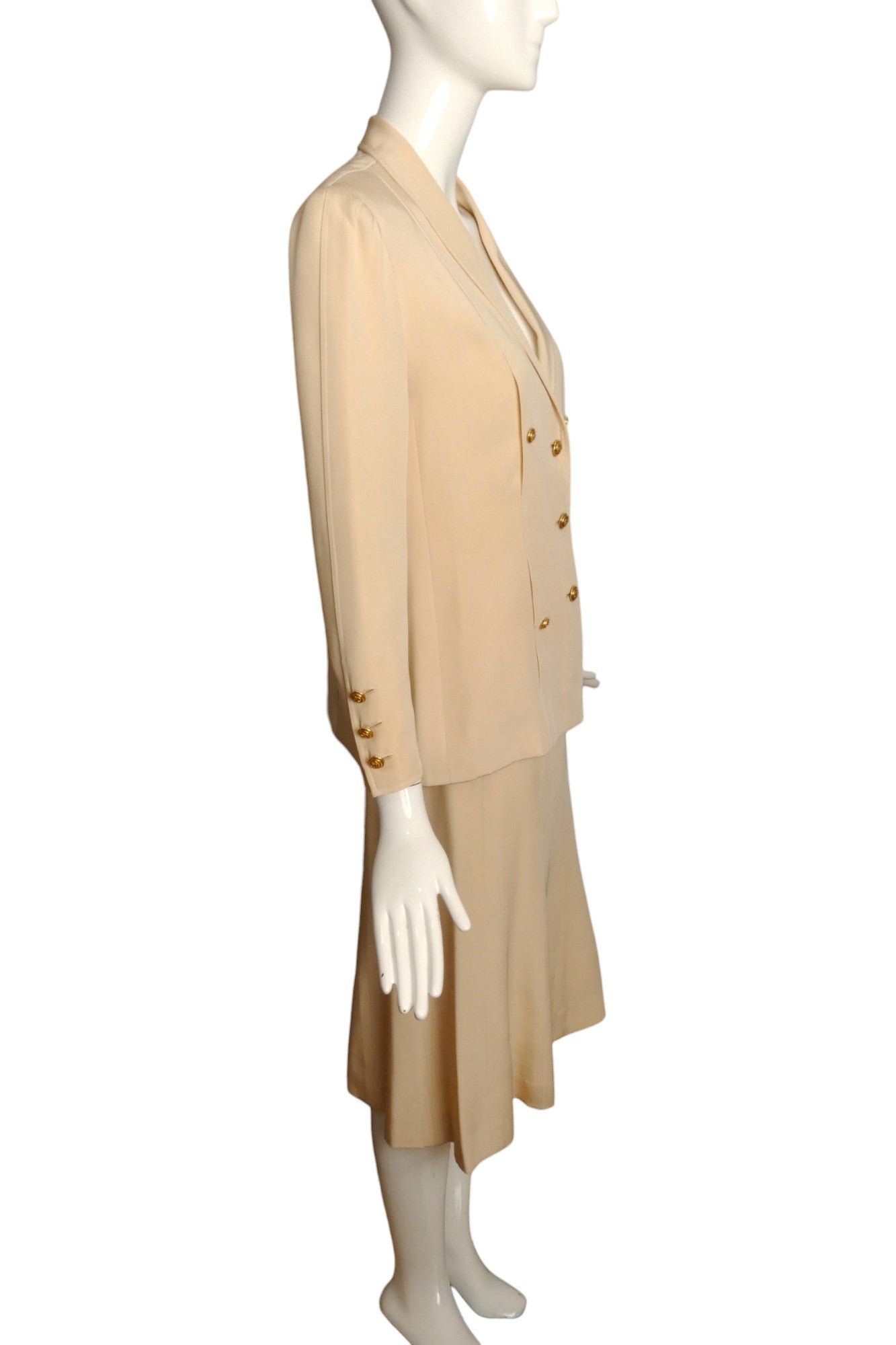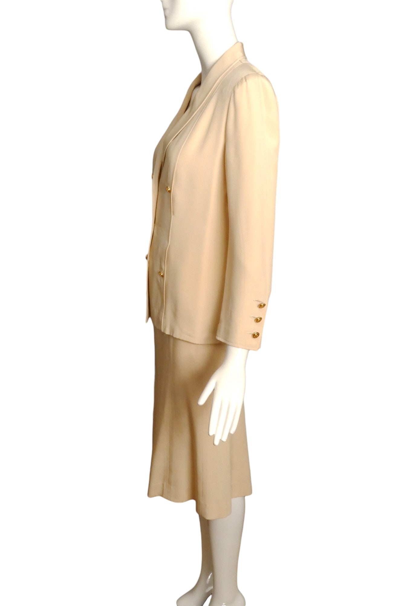 CHANEL BOUTIQUE-AS IS 1980s Ivory Wool Skirt Suit, Size 6